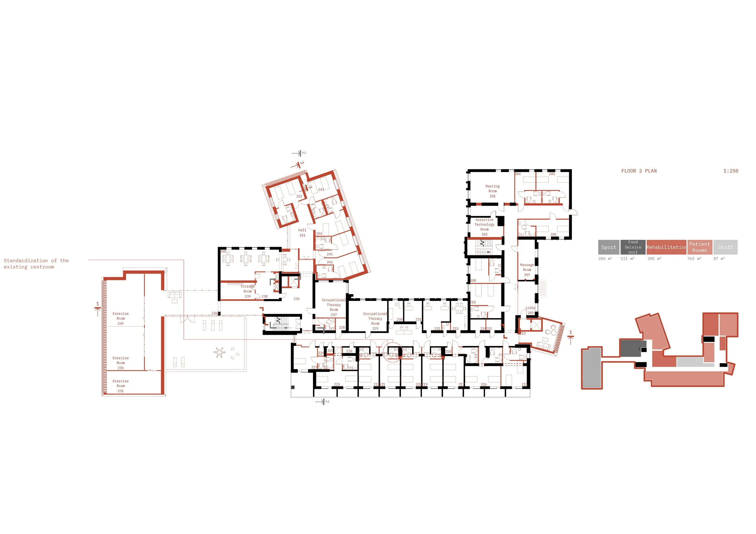 A specialized medical facility for people with physical and psychological trauma has been designed. Through its reconstruction and expansion, we propose to create a new prototype of a hospital. Here the thesis “Where are you heading?”, which often accompanies victims during the post-traumatic period, will have a clear answer and pathways for solving the problems of patients who require not only physical rehabilitation but also socialization and the restoration of psychological balance.