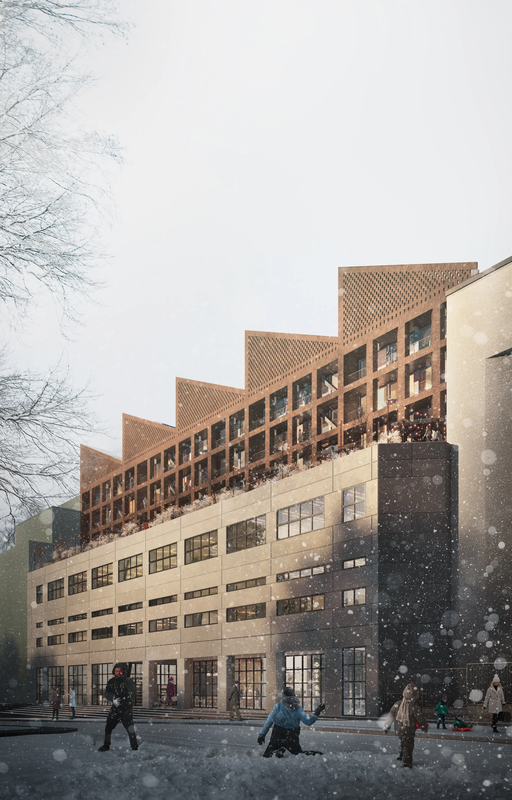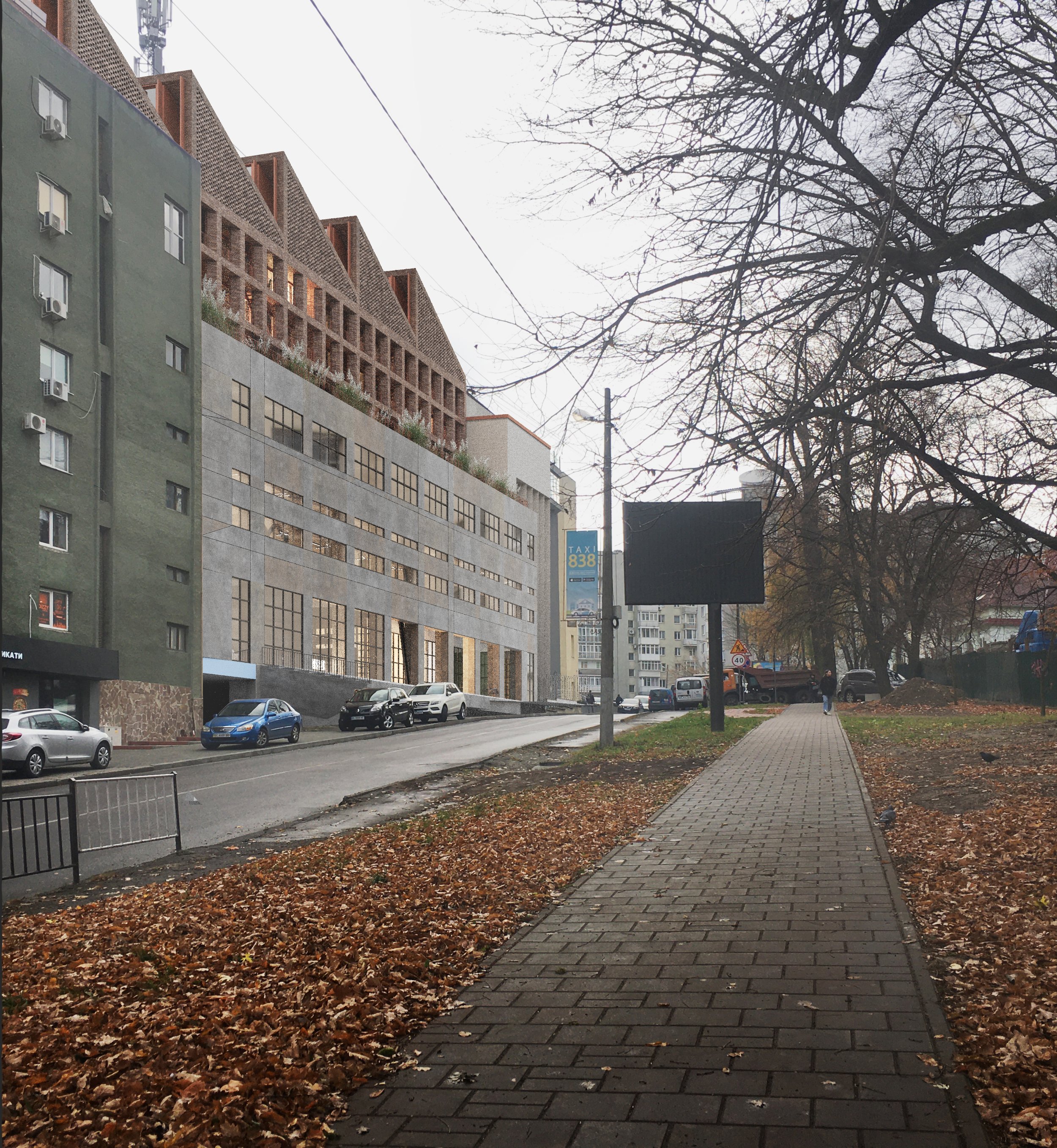 Архітектура верхніх поверхів — це спосіб віддати данину втраченим обʼєктам фабричної архітектури нашого міста. Для нас цей проект — спроба осмислити яким мало би бути сучасне якісне житло, яке будується на основі колишньої промислової будівлі.